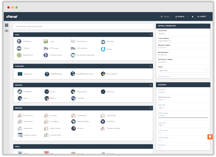 Kullanıcı dostu ve güçlü bir kontrol paneli olan cPanel, web sitenizin yönetimini kolaylaştırır. Dosya yönetimi, e-posta hesapları, veritabanları ve daha fazlasını tek bir yerden yönetebilirsiniz. Bizcehost.com, cPanel hosting çözümleri ile web sitenizin yönetimini kolaylaştırır ve zamanınızı verimli bir şekilde kullanmanızı sağlar.